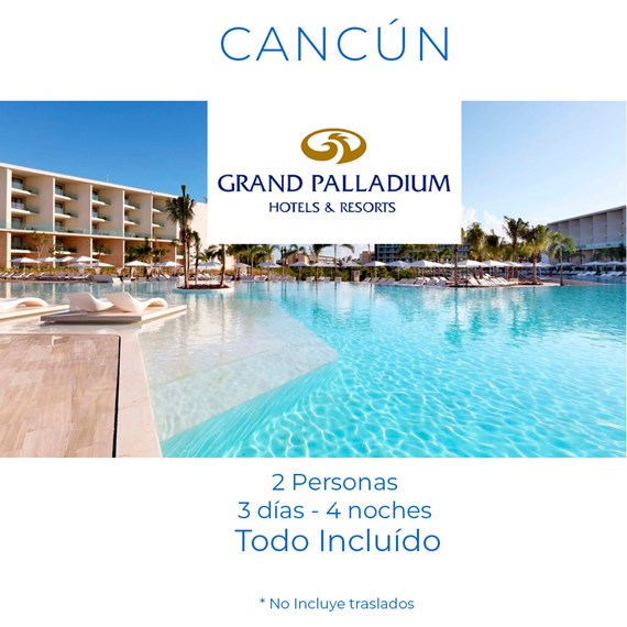 GRAND PALLADIUM COSTA MUJERES RESORT & SPA ADULTOS 4 DÍAS 3 NOCHES HOTEL TODO INCLUIDO 2 PERSONAS TRASLADO AEROPUERTO-HOTEL NO INCLUYE VUELO